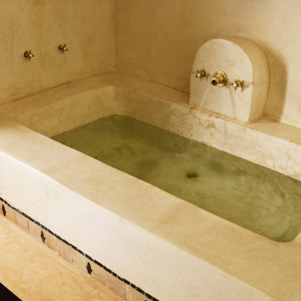 La suite Casablanca, la habitación más grande del riad, es luminosa y etérea, tiene salida a una terraza privada en el primer piso con vista al patio con jardín. Esta suite de decoración auténtica cuenta con un impresionante techo zouac delicados muebles antiguos, piezas de arte y una cama doble con dosel. El vestidor abre paso a un amplio y tradicional baño tadelakt.