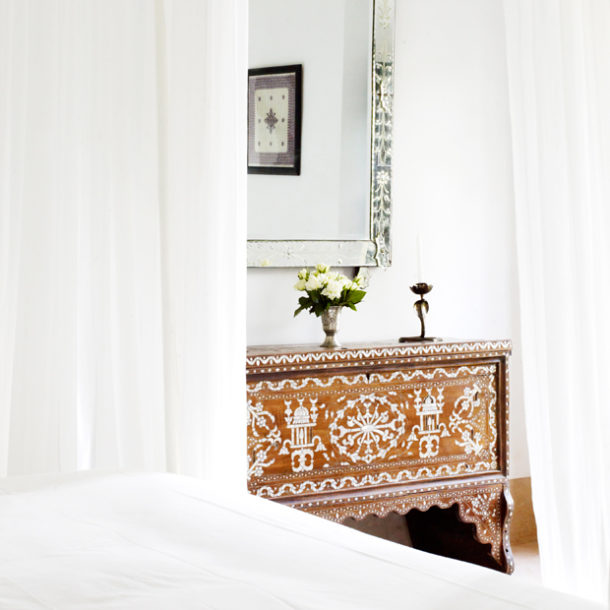 La suite Tangier se encuentra ubicada en el primer piso, y sus amplias ventanas dejan ver el patio con jardín. Esta suite puede unirse a la suite Fez para formar una habitación familiar. La suite cuenta entre su decoración muebles tradicionales con incrustaciones de nácar. La alcoba marroquí ofrece un maravilloso lugar para relajarse y descansar. La cama doble con dosel que corona la suite está adornada con cortinas de gasa blanca. El vestidor abre paso a un baño tadelakt.